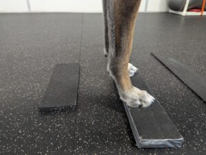 Pirmiausia – kam reikalingos platformos ir targetai? Kodėl negalima daryti pratimų tiesiog ant žemės? Galima, tiesiog naudojant platformas ir targetus galima daug lengviau ir paprasčiau paaiškinti šuniui, ko iš jo norime. O norime, kad jis ne tiesiog pakeistų poziciją iš sėdėjimo į stovėjimą, bet norime, kad ją pakeistų tam tikru judesio piešiniu. Nes darydami vieną ar kitą pratimą, mes turime tam tikrą tikslą, kodėl jį darome, t.y. turime tikslą aktyvuoti vienus ar kitus raumenis. Pakeitus judesio piešinį, pasikeis ir aktyviausiai dirbantys raumenys. Taigi, kai norime, kad šuo atsistotų iš sėdimos padėties, mes norime, kad vienu atveju judėtų priekinės, o kito pratimo metu – užpakalinės kojos. Darant pratimą ant targetų, šuo automatiškai mažiau juda, ir daug lengviau supranta, kad nereikia judinti tam tikrų kojų. Visa tai padeda laiku užfiksuoti tinkamą poziciją ir už ją apdovanoti.